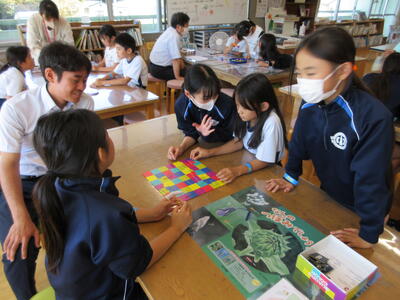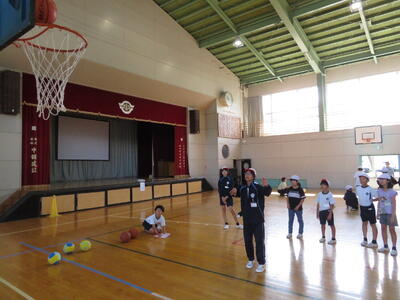 縦割り班で玉入れやジェスチャーゲーム、的あてゲームなどチームやチームの中で代表を決めて、様々な種目に挑戦しました。校舎内に子ども達の笑顔が溢れ、異学年との交流も図られた「みなわ集会」は大成功でした。
