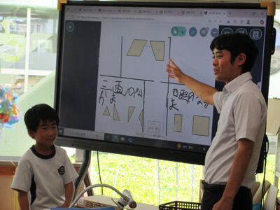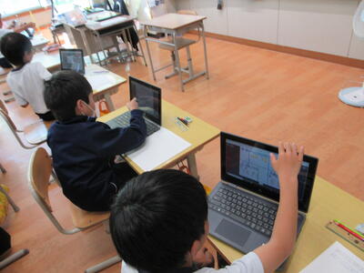 子ども達は、タブレット端末を慣れた手つきで操作し、自分の考えを表現したり、他の児童と考えを共有したりすることができました。