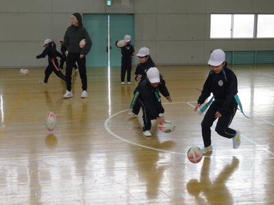ラグビーボールやタグを使用しながら様々な動きに挑戦し、たっぷり2時間、楽しみながら運動することができました。