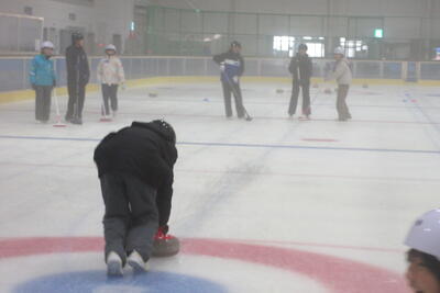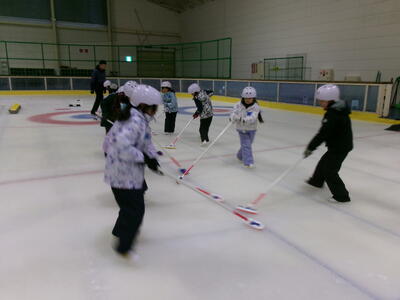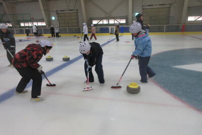 今週は3年生と6年生が県北青少年の家のスケート場で「カーリング教室」行いました。