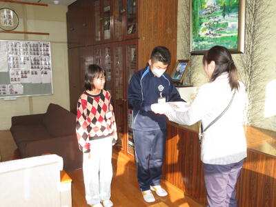 JRC委員会が中心となって行った「赤い羽根共同募金」で集まった募金を二戸市社会福祉協議会の方にお渡ししました。今年度の募金額は19,264円でした。子ども達の、誰かのために役立ちたいという気持ちがいっぱい詰まった募金を地域福祉に役立てていただきたいと思います。