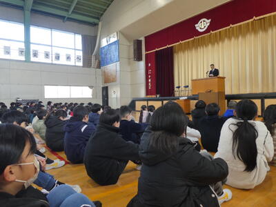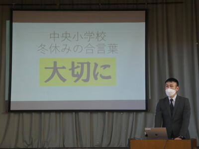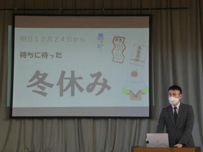 校長からは2学期の振り返りと冬休み中に頑張ってほしいことを話しました。