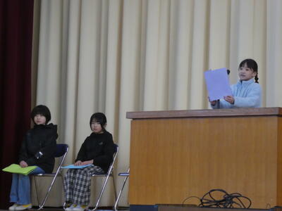 また、1,3,5年生の児童代表が「2学期に頑張ったこと」等について作文発表を行いました。