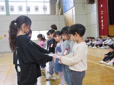 「1年生を迎える会」 投稿: 校長 (16:11) 「1年生を迎える会」を行いました。 6年生と手をつないで入場する1年生はとてもうれしそうです。 2年生から6年生の上級生が「1年生を迎える会」のために様々工夫して準備をしました。 1年生の入学を全校で歓迎している気持ちがしっかり伝わる温かい会になりました。 Tweet -